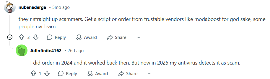 As negative posts about Modafinia piled up on Reddit, there also seemed to be a last-ditch effort to salvage its reputation, or more likely, to keep pulling in new customers to siphon money from. Moderators noticed a surge of coordinated comments insisting that Modafinia is “legit,” all sounding the same and appearing within short intervals, leading to the ban of the term: Modafinia.