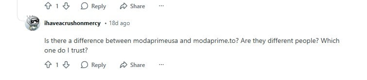 The confusion around Modaprime did not happen by accident. It built up over time as different sites started using the same name without any clear connection to the original seller, something repeatedly flagged in Modaprime Reddit discussions.