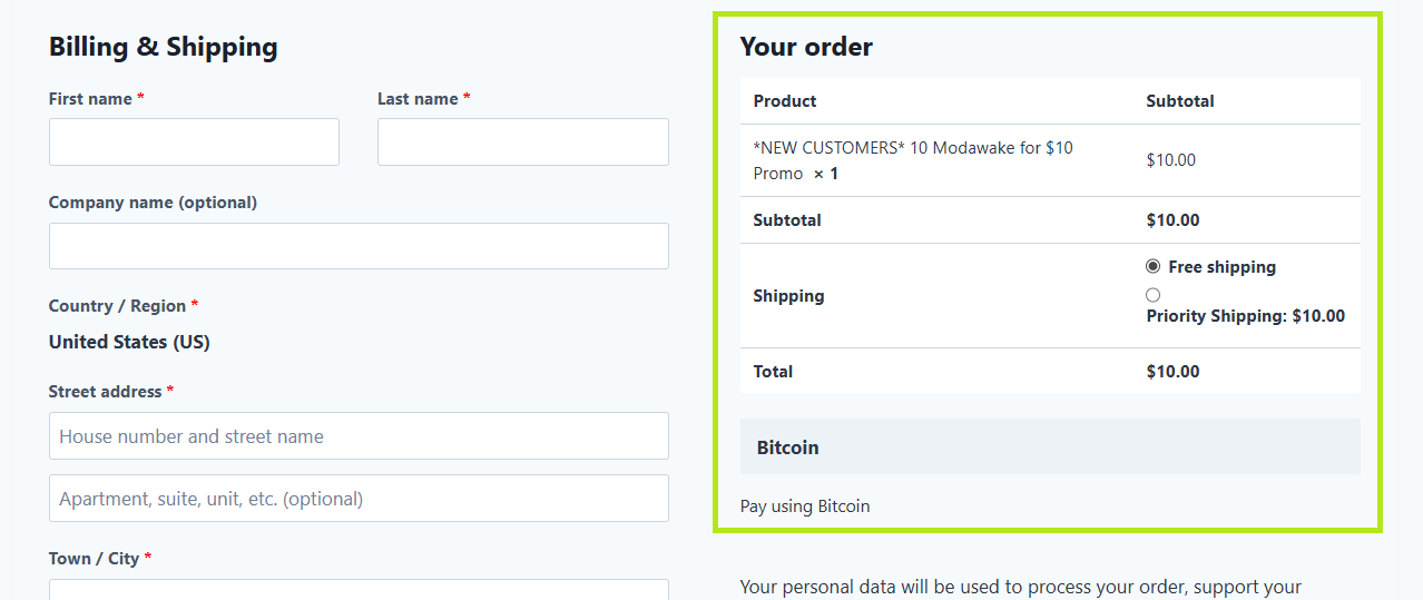 I also checked the site myself to see how things actually look at checkout. Shipping inside the US was offered for free, with an optional Priority Shipping upgrade listed at $10.00, which suggests a clear baseline rather than forcing buyers into paid speed tiers. Payment options were straightforward, and Bitcoin was available, without any last-minute changes or awkward redirects.